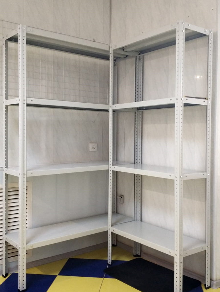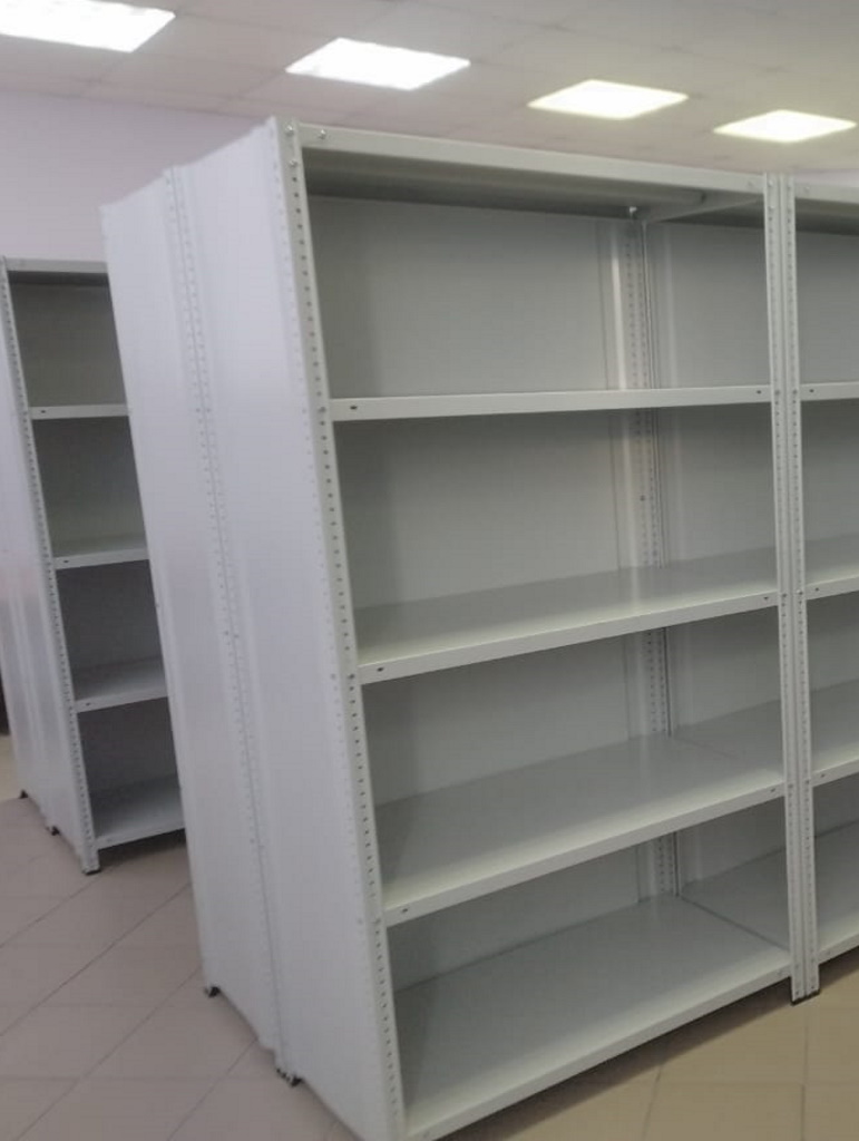 Стеллаж комплектуется пластмассовыми подпятниками и уголками жесткости (только для крайних полок).