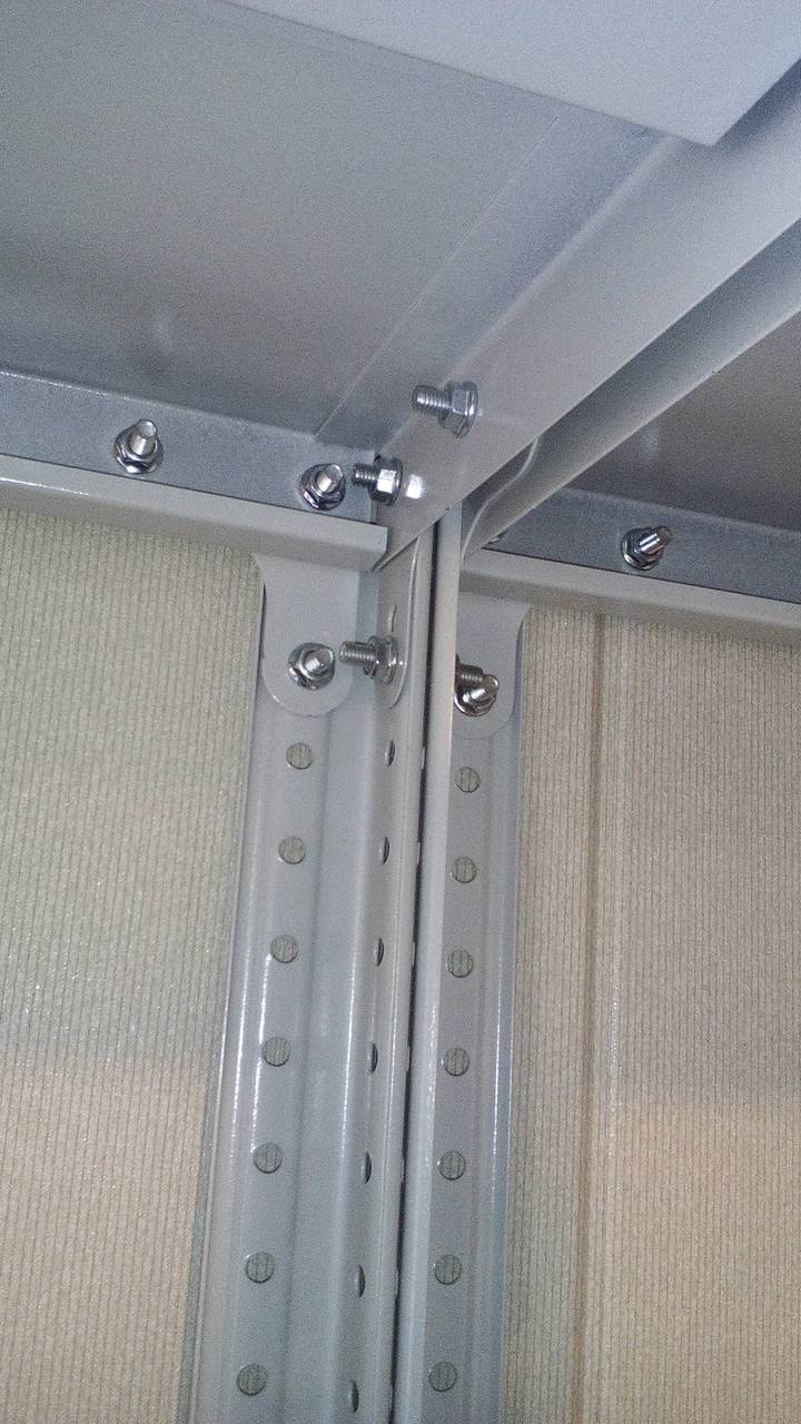 При сборке стеллажа высотой более 2,5 м обязательно крепление секции к стене.