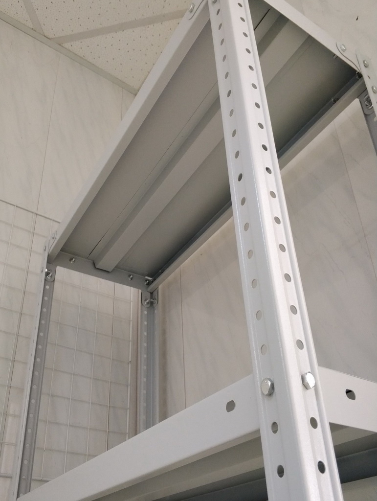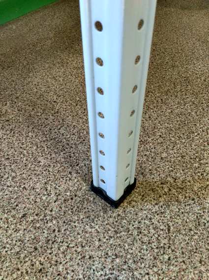 Стеллаж комплектуется пластмассовыми подпятниками и уголками жесткости (только для крайних полок).
